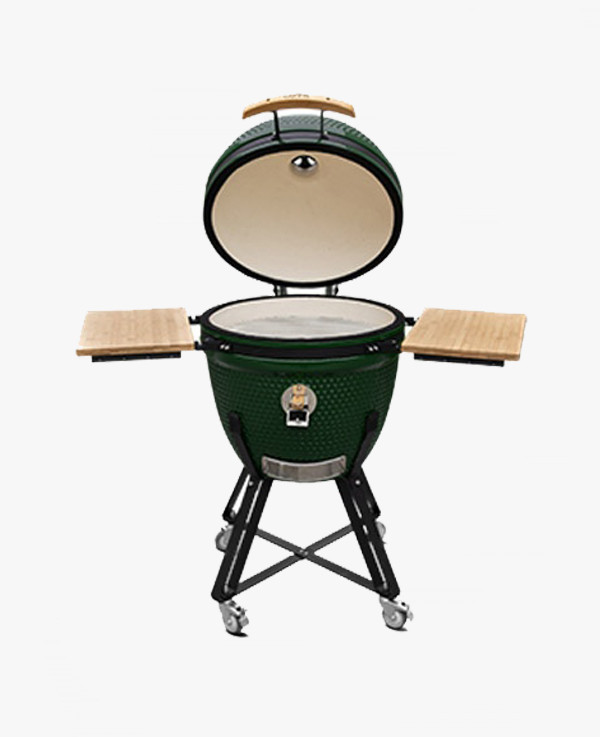 El modelo Kamado grill XL 60 está disponible en los siguientes colores: verde, negro y gris. Fabricado en cerámica esmaltada y acero.